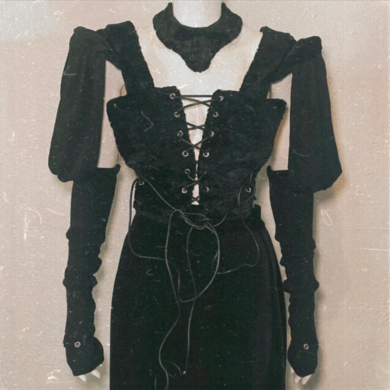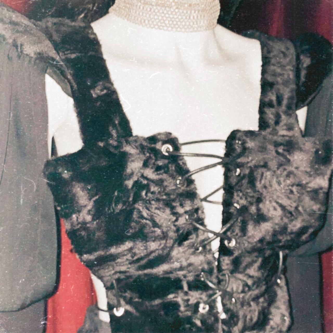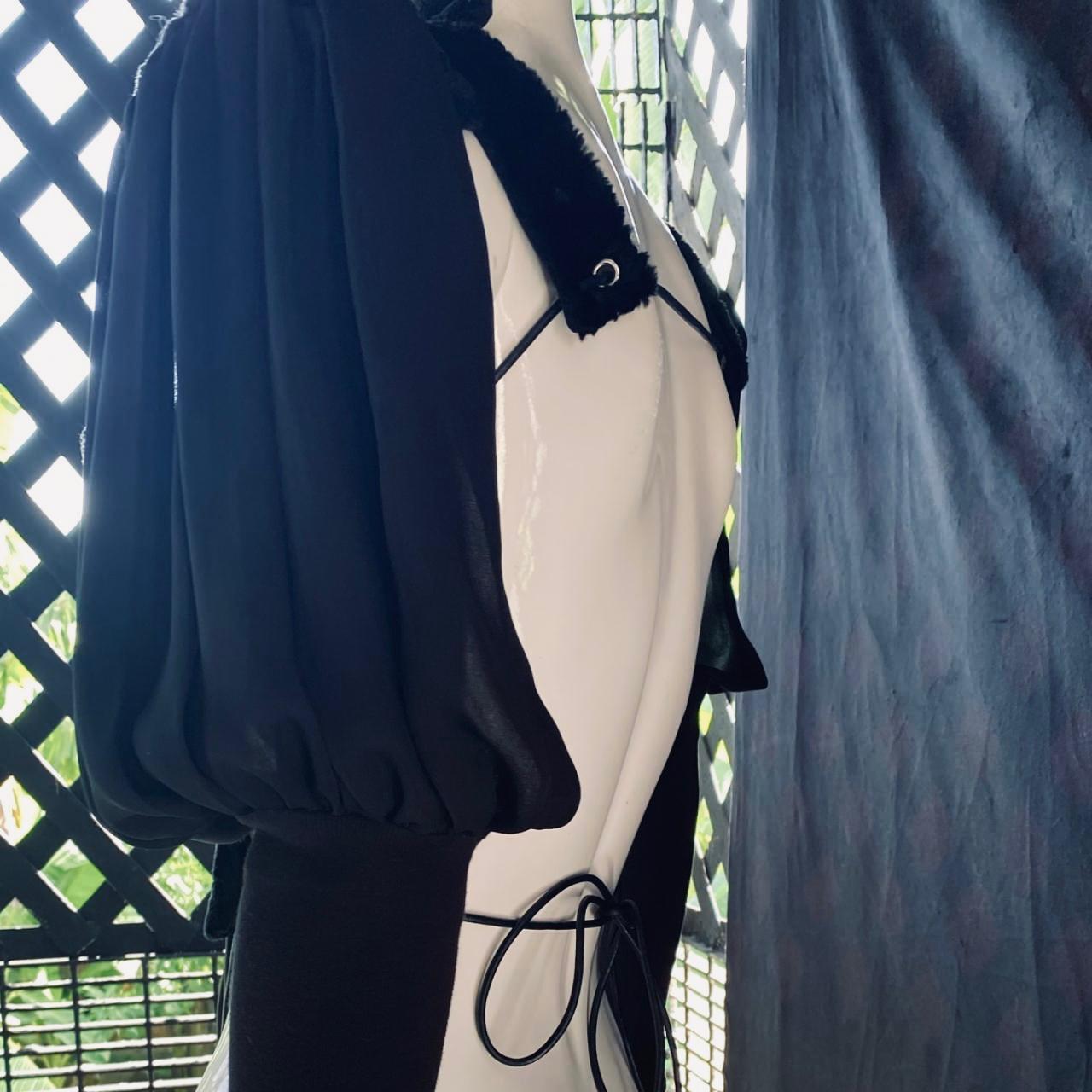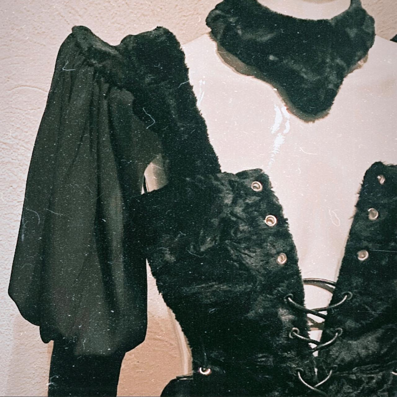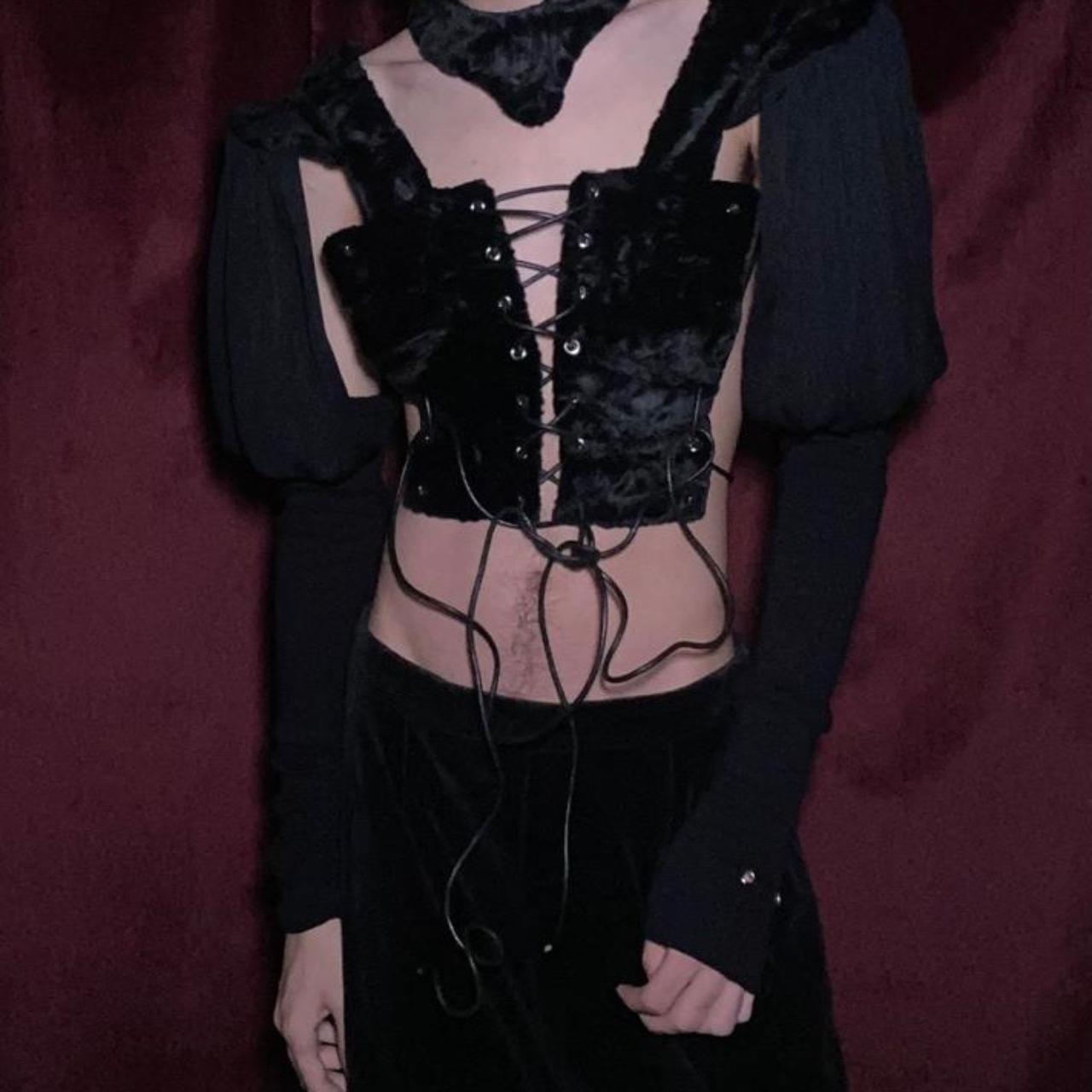 Theríon Morphé black cropped armor piece top! With puffy sleeves and cuffs.